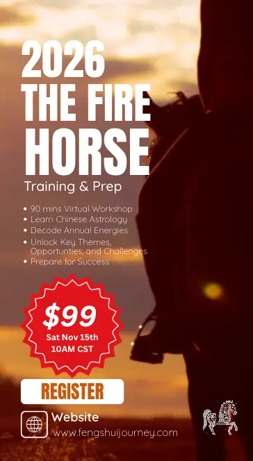 We transition from the Year of the Snake (Yi Si, Wood Snake) to the Year of the Horse (Bing Wu, Fire Horse) in 2026 on Feb 4, 2026. 2026 is bold, dynamic, and transformative. Are you ready to harness its energy? Join us to decode Chinese Astrology, unlock Classical Feng Shui insights, and learn remedies, enhancers, and personal alignment tips to thrive in this powerful year.